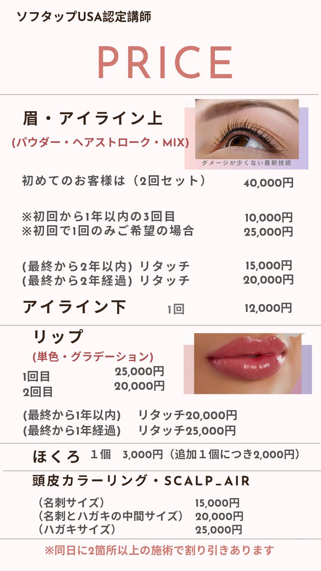 ※他店で施術されたお客様の修正も対応していますが、ご来店時のお客様の状態によってはお断りする場合もありますのでご了承下さい。